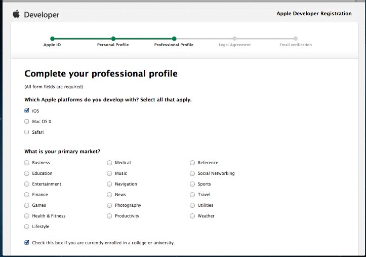 個人情報の入力を終えると、iOSの開発を何故するのか聞かれるので正直に答えましょう。